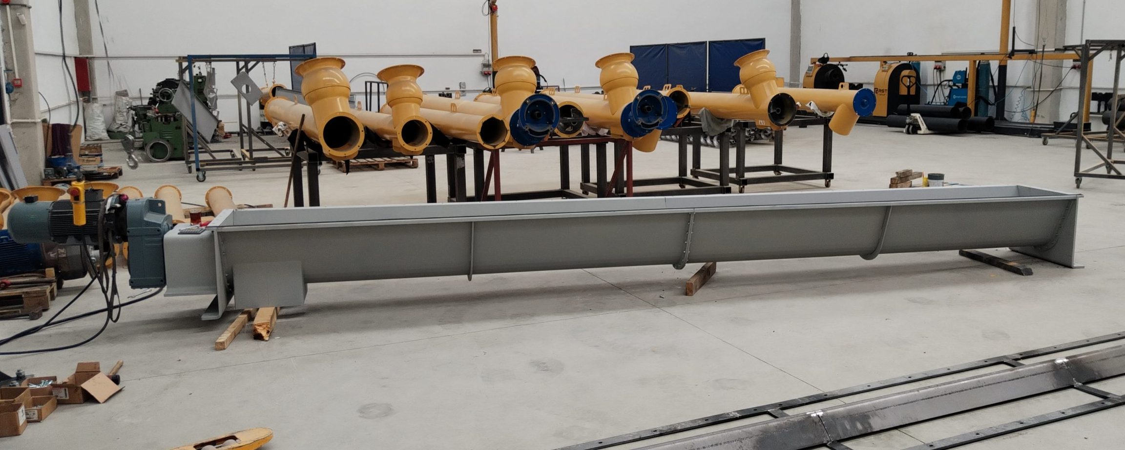 RA U helezonlar, özellikle bunker ve yatay siloların altında, toz ve granül malzemelerin taşınmasında kullanılırlar.
